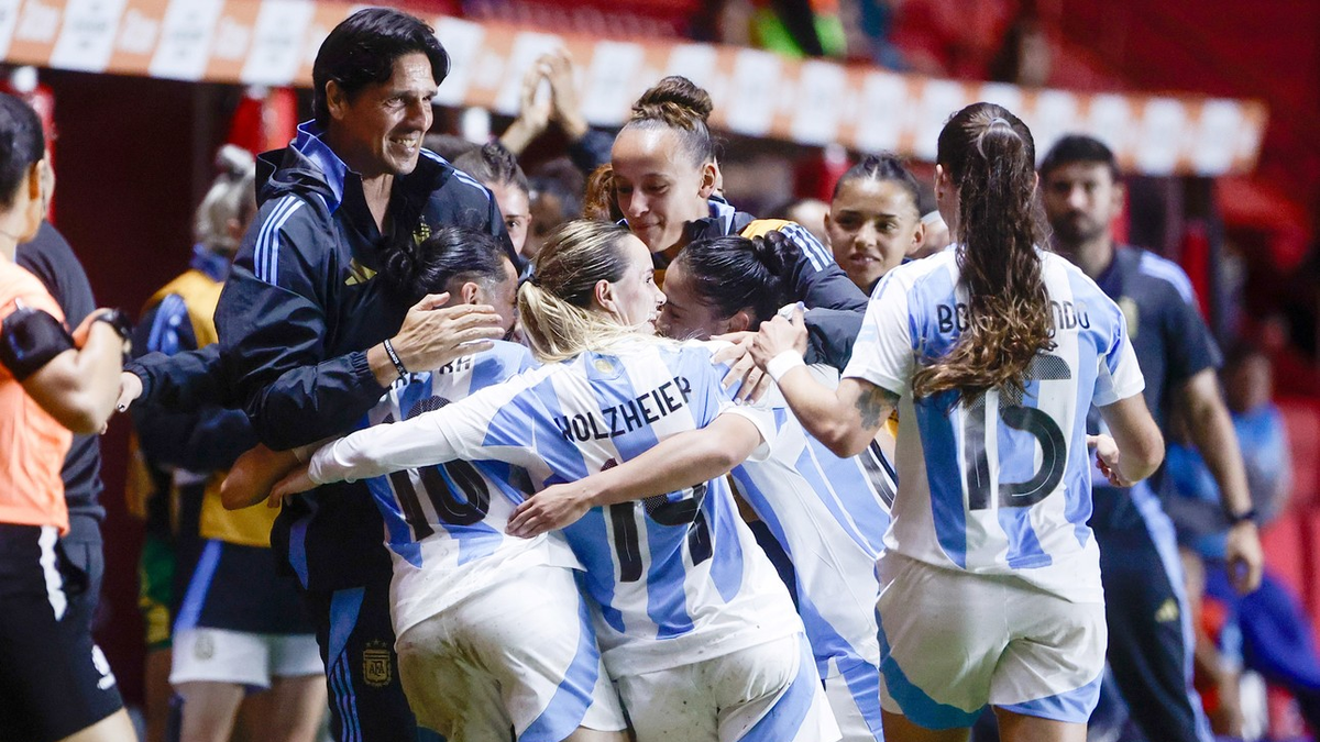 Se jugó bajo la lluvia y la Albiceleste arrancó con domino de la pelota. Eliana Stabile tiró el corner del gol de Cometti contra la arquera Cristina Recalde. Después, Holzheier remató del borde del área tras una buena jugada colectiva. El tanto de Pereyra fue al capitalizar un rebote largo.