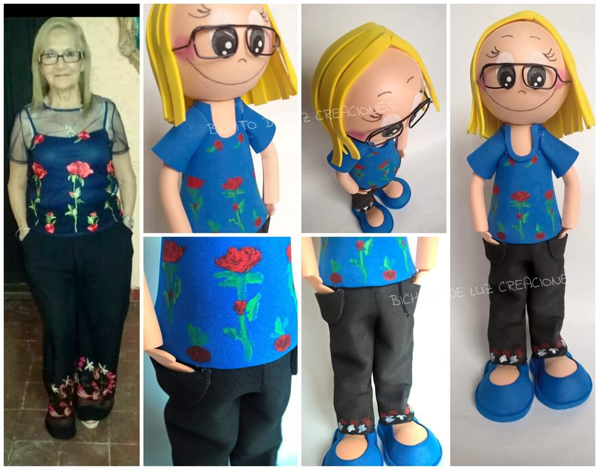 Lo ideal para ello es buscar una foto de la persona que queremos «imitar» y de su ropa si es el caso, para poder asemejar la muñeca lo máximo posible.